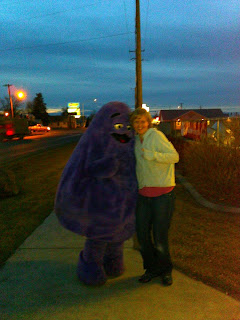 Grimace!!! I love character outfits! We saw these guys, the Ham Burglar too on our way back from Clover Leaf Ice Cream with my brother.