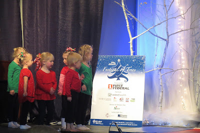 So this year, Miss Amanda, her teacher, wanted them to do a Christmas recital, but all the venues were booked from the various participants last year. So she signed them up for the Festival of Trees...kind of an odd thing and a very small stage, but it worked out OK. (She's hoping to find something a little better next year!) My parents were in town and our friends Paul and Paula came to see as well!
